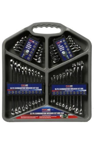 If you are in the market for a high performance Metric and SAE Combination wrench set, stop looking! These commercial grade wrenches feature chrome vanadium steel that is rust and corrosion resistant. The 32 piece Grip Combination wrench set is reliable, durable, and designed to withstand a lifetime of use. Don't settle for knock-offs and cheap imitations with inferior workmanship. Dare to compare!FEATURES:Drop forged heat treated, chrome vanadium steelChrome plated to resist rust and corrosion12 point flank drive ring provides 25% more torqueIncludes Heavy duty storage rackINCLUDED: 6 PC Stubby Wrench Set SAE1/4, 3/8, 7/16, 1/2, 9/16, and 5/86 PC Stubby Wrench MM10, 11, 12, 13, 14, and 15 10 PC Combination Wrench Set SAE1/4, 5/16, 11/32, 3/8, 7/16, 1/2, 9/16, 5/8, 11/16, and 3/410 PC Combination Wrench SET MM6, 7, 8, 9, 10, 12, 13, 15, 17, and 18
